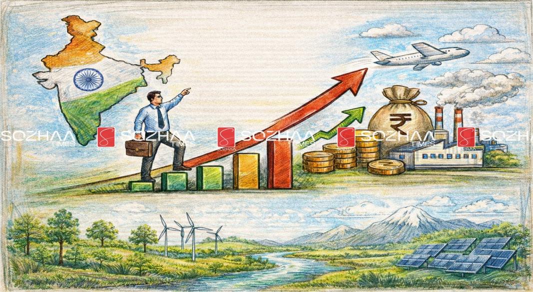 புதுடெல்லி: நடப்பு 2025–26 நிதியாண்டில் இந்திய பொருளாதாரம் 7.4% வளர்ச்சி அடையும் என மத்திய அரசின் பொருளாதார ஆய்வறிக்கை தெரிவித்துள்ளது. இந்த ஆய்வறிக்கையை, வரும் 2026–27 மத்திய பட்ஜெட்டுக்கு முன்னதாக நிதியமைச்சர் நிர்மலா சீதாராமன் மக்களவையில் தாக்கல் செய்தார். உலகளவில் புவிசார் அரசியல் பதற்றம், வர்த்தக மோதல்கள் போன்ற காரணங்களால் பொருளாதார சூழல் பலவீனமாக இருந்தாலும், இந்திய பொருளாதாரம் தனித்துவமாக வலுவாக செயல்படுகிறது என ஆய்வறிக்கை குறிப்பிடுகிறது. ஜிடிபி வளர்ச்சி முன்னறிவு 2025–26 நிதியாண்டில் மொத்த உள்நாட்டு உற்பத்தி (GDP) வளர்ச்சி: 7.4% 2026–27 நிதியாண்டில் வளர்ச்சி: 6.8% முதல் 7.2% வரை தொடர்ந்து 4-வது ஆண்டாக இந்தியா உலகின் வேகமாக வளரும் பெரிய பொருளாதார நாடாக நீடிக்கிறது சேவைத் துறை மற்றும் வருவாய் நிலை சேவைத் துறை வளர்ச்சி: 9.1% மத்திய அரசின் வருவாய்: ஜிடிபியின் 9.2% நேரடி வரி செலுத்துவோர் எண்ணிக்கை: 9.2 கோடி 2025 ஏப்ரல்–டிசம்பர் காலத்தில் ஜிஎஸ்டி வசூல்: ரூ.17.4 லட்சம் கோடி இது கடந்த ஆண்டை விட 6.7% அதிகம் முதலீடு மற்றும் கடன் நிலை மத்திய அரசின் மூலதன செலவினம்: ஜிடிபியின் 4% கடன்–ஜிடிபி விகிதம்: 2020-க்கு பிறகு 7.1% குறைவு அதிக பொது முதலீடுகள் இருந்தபோதும் நிதி நிலைத்தன்மை பாதுகாக்கப்பட்டுள்ளது வங்கி மற்றும் நிதித் துறை மொத்த வாராக்கடன் விகிதம்: 2.2% நிகர வாராக்கடன் விகிதம்: 0.5% 2025 டிசம்பரில் வங்கி கடன் வளர்ச்சி: 14.5% ஜன் தன் திட்டம்: 55.02 கோடி கணக்குகள் முத்ரா திட்டம்: 55.45 கோடி பேருக்கு ரூ.36.18 லட்சம் கோடி முதலீட்டாளர்கள் மற்றும் சந்தை வளர்ச்சி புதிய டிமேட் கணக்குகள் (9 மாதங்களில்): 2.35 கோடி மொத்த டிமேட் கணக்குகள்: 21.6 கோடி பரஸ்பர நிதி முதலீட்டாளர்கள்: 5.9 கோடி இதில் 2-ம் கட்ட நகரங்களைச் சேர்ந்தவர்கள்: 3.5 கோடி வேளாண்மை மற்றும் சமூக முன்னேற்றம் 2024–25 உணவு தானிய உற்பத்தி: 3,577.3 லட்சம் மெட்ரிக் டன் பிஎம் கிஸான் திட்டத்தின் கீழ் வழங்கப்பட்ட தொகை: ரூ.4.09 லட்சம் கோடி பன்முக வறுமை விகிதம்: 55.3% → 11.28% (2005–06 முதல் 2022–23 வரை) உற்பத்தி, எரிசக்தி மற்றும் வேலைவாய்ப்பு PLI திட்டம் (14 துறைகள்): முதலீடு: ரூ.2 லட்சம் கோடி வேலைவாய்ப்பு: 12.6 லட்சம் சூரிய மற்றும் புதுப்பிக்கத்தக்க எரிசக்தி உற்பத்தியில் இந்தியா: உலகில் 3-வது இடம் வெளிநாட்டு வர்த்தகம் மற்றும் முதலீடு 2025 நிதியாண்டில் மொத்த ஏற்றுமதி: 825.3 பில்லியன் டாலர் சேவை ஏற்றுமதி வளர்ச்சி: 13.6% வெளிநாடுகளில் இருந்து வரும் பணமாற்றம்: 135.4 பில்லியன் டாலர் அந்நியச் செலாவணி கையிருப்பு: 701.4 பில்லியன் டாலர் இது 11 மாத இறக்குமதியை சமாளிக்க போதுமானது அமெரிக்காவுடன் வர்த்தக ஒப்பந்தம் இந்தியப் பொருட்களுக்கு விதிக்கப்பட்ட 50% வர்த்தக வரி காரணமாக ஏற்றுமதி பாதிப்பு இதை சரி