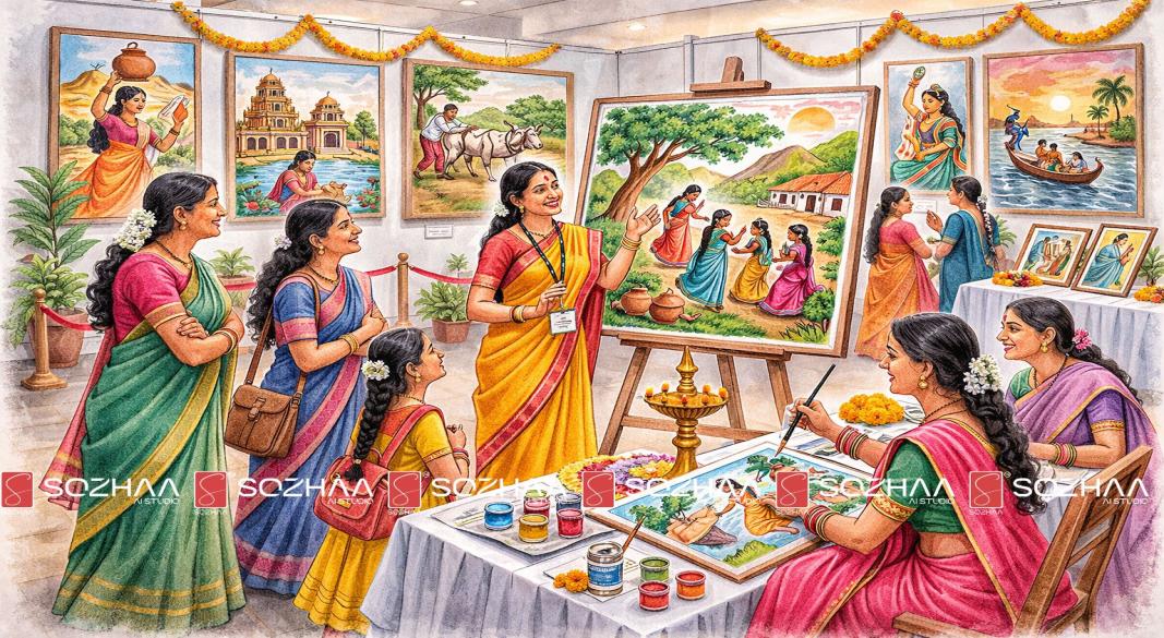 சென்னை மயிலாப்பூரில் நடைபெற்ற “மயோள்” ஓவியக் கண்காட்சி, பெண்களின் வாழ்க்கை அனுபவங்களையும் சிந்தனைகளையும் கலை வடிவில் வெளிப்படுத்திய நிகழ்வாக கவனம் பெற்றுள்ளது.